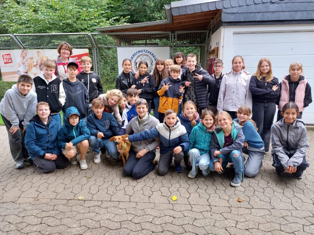 Am 10. September besuchte uns die Schulklasse 6e des Megina-Gymnasiums aus Mayen. Noch vor dem eigentlichen Tierheimbesuch wartete bereits das erste Highlight auf die Kinder: Unser Sperrmüll wurde abgeholt! Kaputte Hundebetten, Katzenkörbe, Kratzbäume und vieles mehr wurden in einen großen Wagen mit integrierter Presse geworfen – ein spannendes Erlebnis, das viele Kinder so noch nie gesehen hatten.